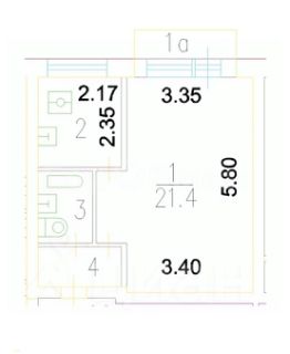 Общая площадь - 31,6 м²