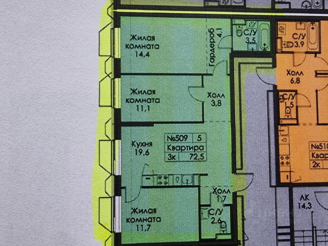 Квартира находится в секции 4 на 2 этаже, строительный номер квартиры 509.