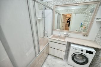 В квартире выполнена качественная отделка, находится в хорошем состоянии, продается полностью укомплектованной мебелью и бытовой техникой, включая сплит-систему, посудомоечную машину и пр.