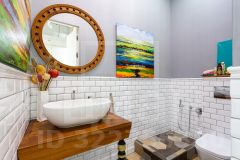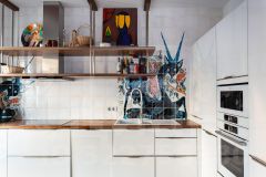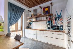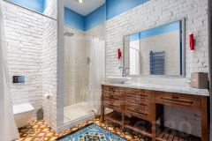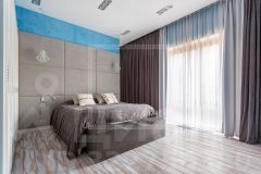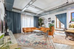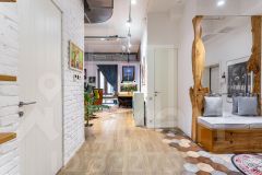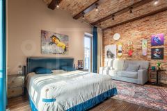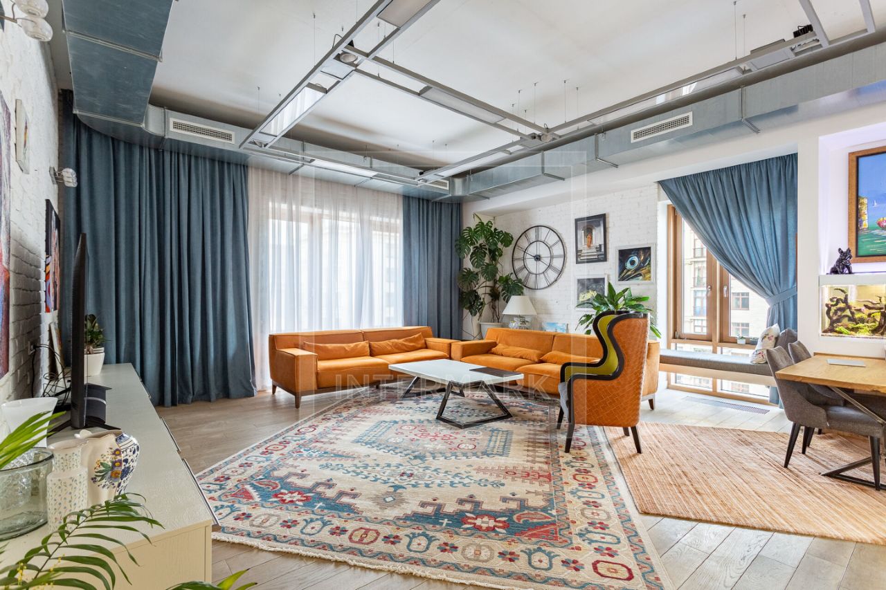 Интерьер квартиры выдержан в эффектном стиле "фьюжн": натуральные фактуры, сочные контрастные и мягкие нежные оттенки, яркие предметы декора создают уютное и стильное жилое пространство, где так приятно находиться. Высокие потолки в 3.5 метра добавляют ощущение простора и света. В квартире предусмотрены функциональные, вместительные системы хранения. Великолепную инсоляцию создают панорамные окна, ориентированные на 3 стороны света.