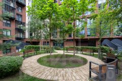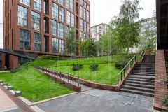 Стильные лобби с зонами ожидания, подземный паркинг, ландшафтная внутренняя территория со спортивными и детскими площадками. Концепция "город в городе" включает все для максимально комфортного семейного проживания: детский сад, фитнес-клуб, пекарни, рестораны. В центральной части квартала расположен пруд с благоустроенной зоной для прогулок и отдыха. В пешей доступности - исчерпывающая инфраструктура района Хамовники.