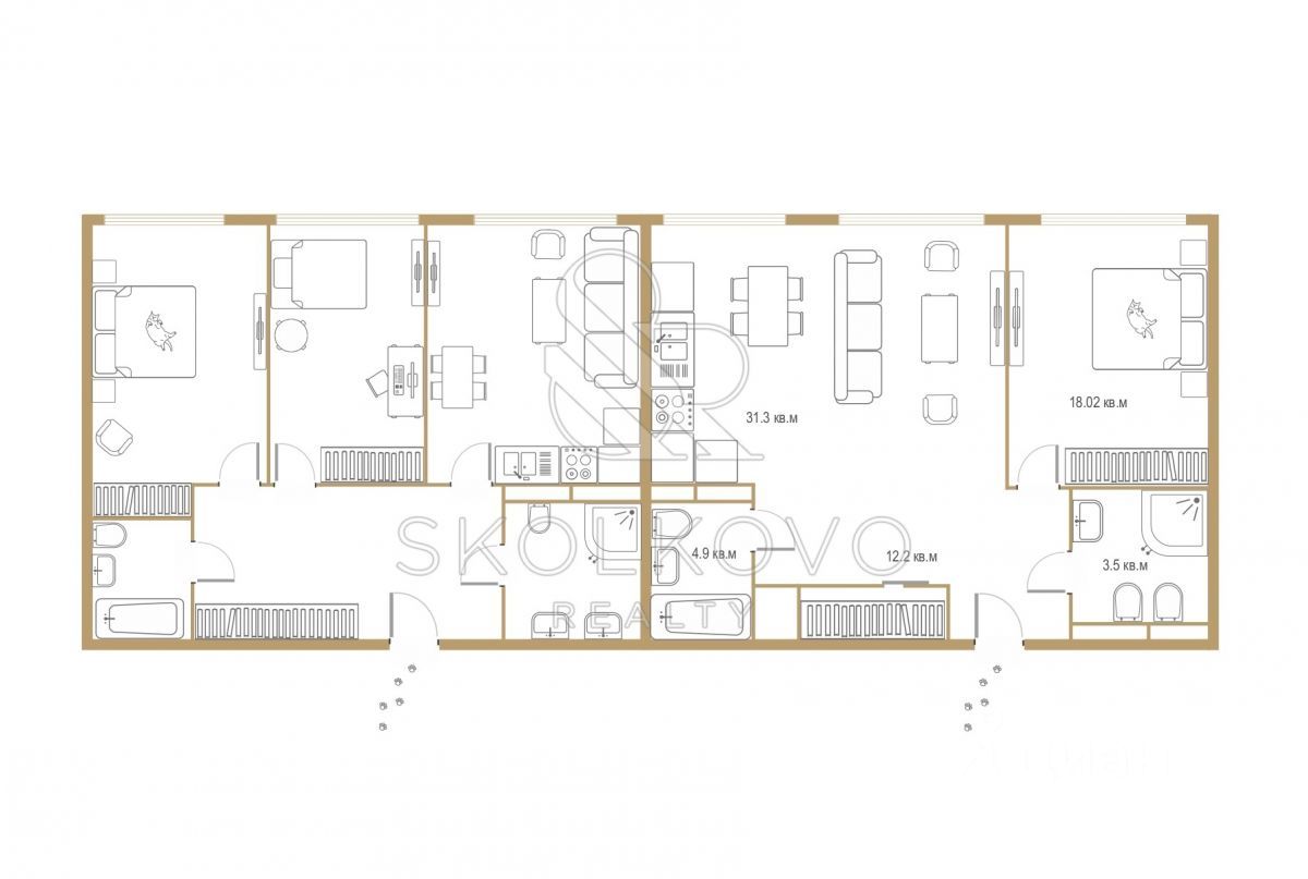id: 550681 Предлагаем вашему вниманию просторную квартиру площадью 140,5 кв.м, расположенную на 39 этаже 41-этажного жилого дома в популярном районе Шелепиха, всего в нескольких минутах от метро.