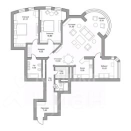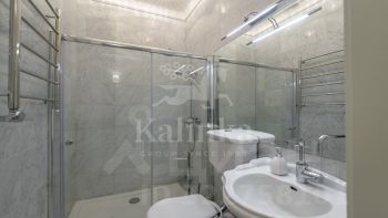 Квартира оснащена качественной мебелью и современной бытовой техникой. В отделке использован дубовый паркет и натуральный камень.