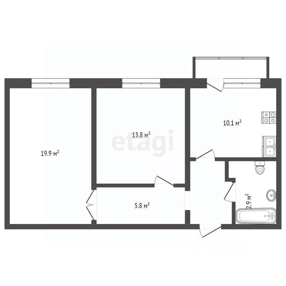 Общая площадь квартиры - 59 кв. м. В квартире есть все необходимое для комфортного проживания, а также вся мебель остается новому владельцу. Комнаты изолированные 20 и 14 м2, просторный коридор 7,4 м2 и вместительная кухня с выходом на балкон 10 м2