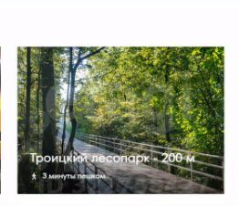 В пешей доступности метро, школа с 25-метровым бассейном и IT-кластером и при этом целых 63 га благоустроенного Троицкого лесопарка под окнами.