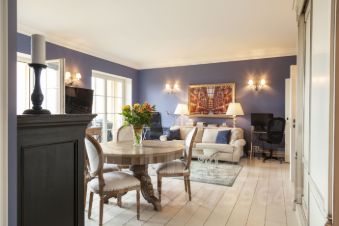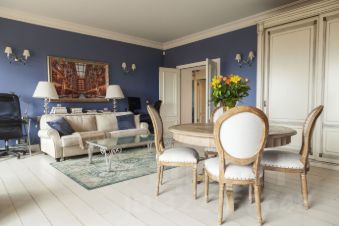 Квартира расположена в историческом элитном жилом доме в стиле сталинский ампир. В 2017 году скульптурная композиция на доме была признана объектом культурного наследия. Гагаринский район ЮЗАО- удобная локация. Квартира с отличными видовыми характеристиками, с видом на парк Нескучный сад. Жить здесь — значит наслаждаться каждым сезоном прямо из окон своей квартиры: весной — зелень парка, летом — солнечные лучи на листве, осенью — золото деревьев, зимой — волшебные снежные пейзажи. Окна квартиры выходят на две стороны: потрясающий вид на площадь Гагарина и на здание Академии наук — символы старой интеллигентной Москвы.