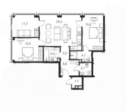 Общая площадь 88 кв.м, 3 изолированных комнаты 11,7-13,9-15 кв.м. , мастер спальня со своим санузлом, просторная кухня-гостиная 27,8 кв.м., 2 отдельных с/у.
