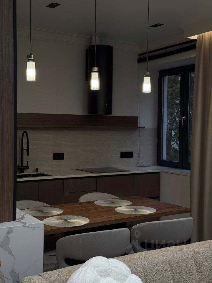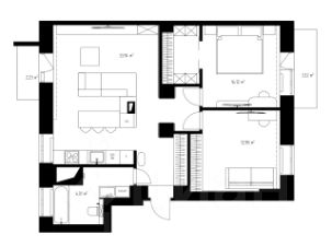 В квартире современная планировка. Просторная кухня гостиная 34 м2, укомплектованная дорогой кухней из шпона под заказ и техникой Bosch, с собственным балконом, отдельная изолированная спальня 16 м2 с выделенной гардеробной комнатой 3 м2 и выходом на балкон, вторая комната, которую можно использовать как спальню, детскую или кабинет, объединеный сан узел с окном.