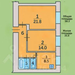 • Комнаты: 21,8 м² и 14 м² — изолированные, светлые