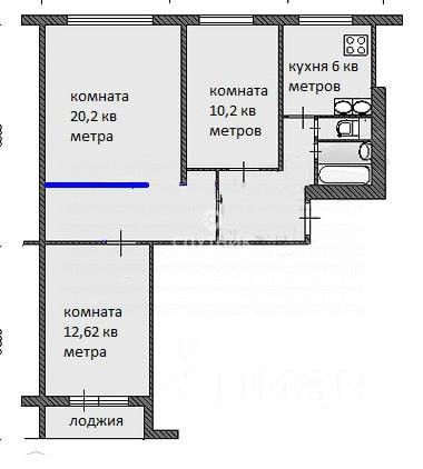 Арт. 119728213 Продаются две комнаты в 3-х комнатной квартире, отдельный кадастровый номер, не доля!