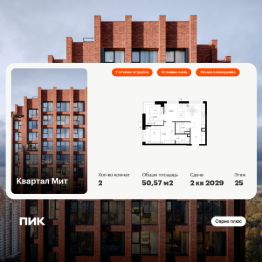 Новостройка! Продается 2-комн. кв-ра площадью 50,57 кв.м, (Корпус 3.4, Секция 4) 25 этаж 32-этажного дома в Квартал Мит от ПИК. "Квартал Мит" строится в экологически чистом районе Митино, где по соседству расположен большой лесопарк, а с двух сторон протекают реки Сходня и Журавка. Для семей с детьми здесь появится школа и два детских сада.