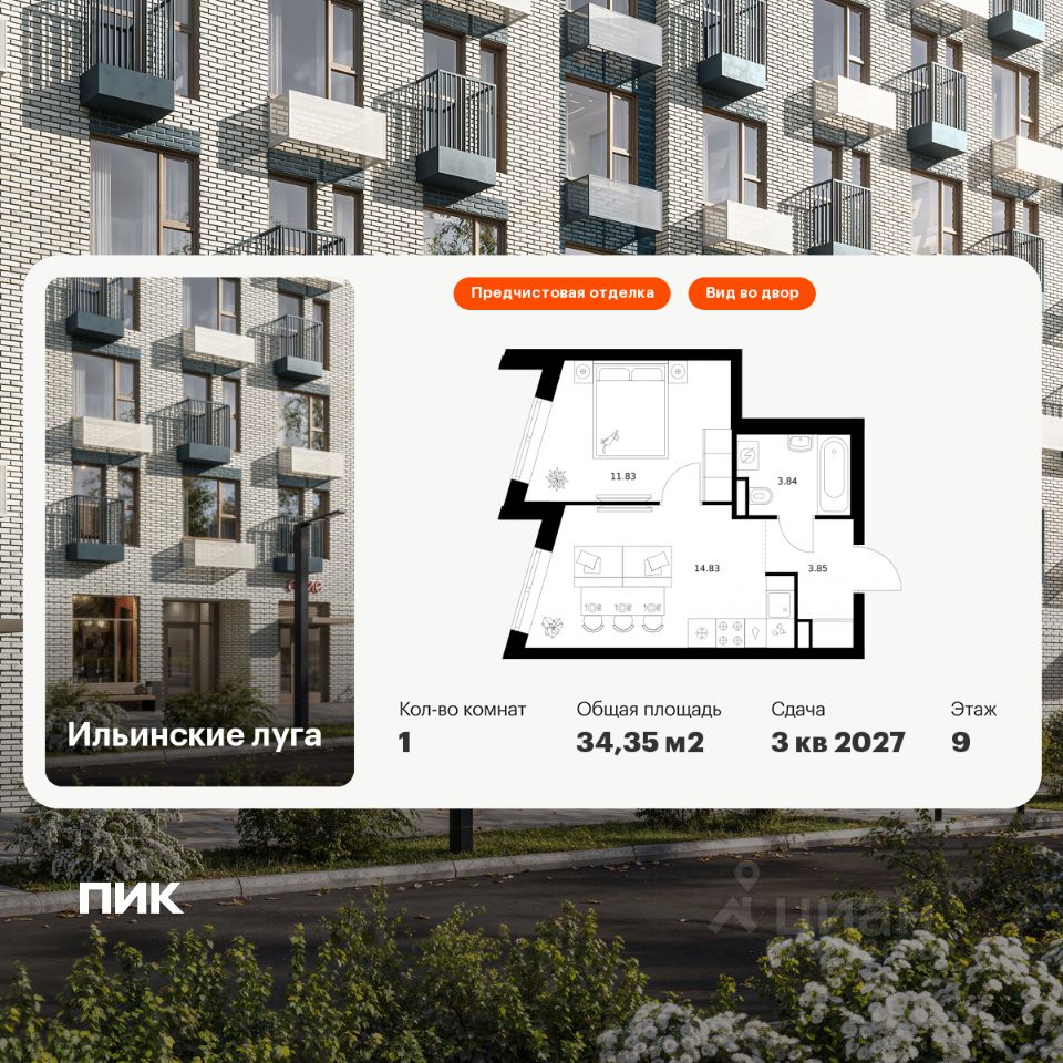 Продаётся 1-комн. квартира площадью 34,35 кв.м на 9 этаже 9 этажного дома (Корпус 4.2, Секция 5) проекта ПИК Ильинские луга. Светлый просторный подъезд на уровне земли, функциональная планировка, большие окна, предчистовая отделка.