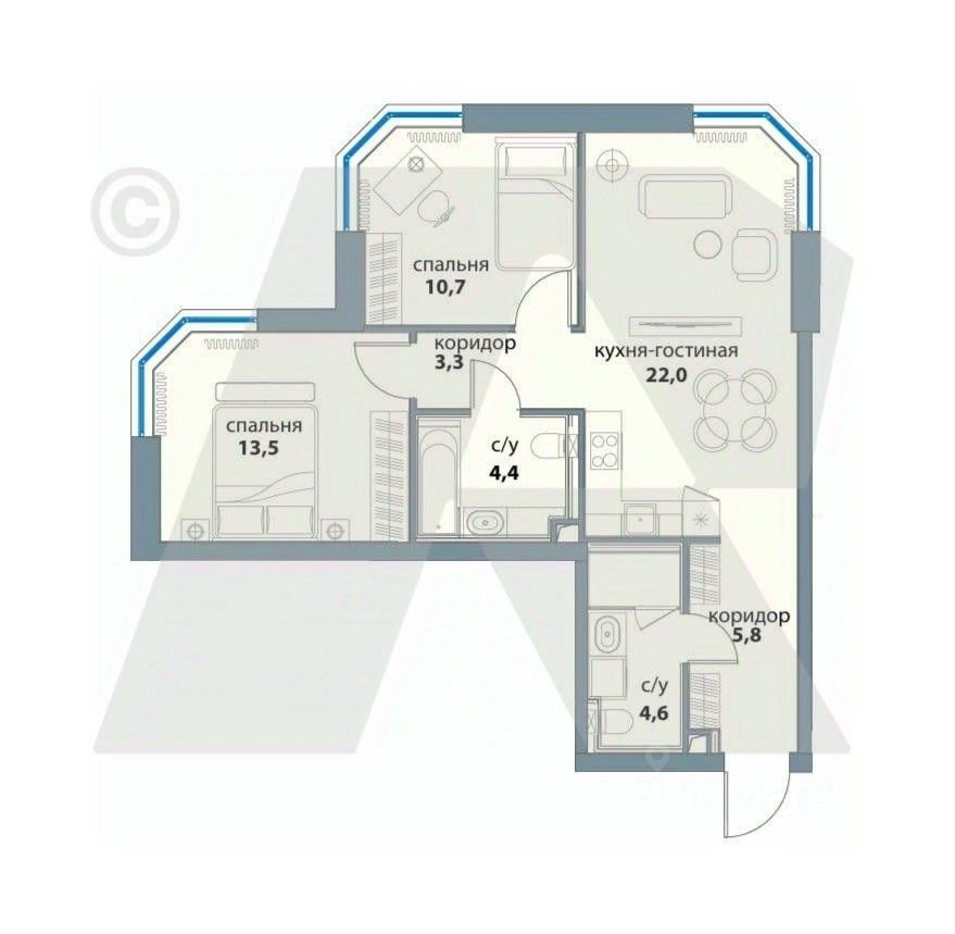 - Кухня-гостиная с обеденной зоной.