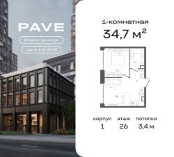 Продается 1-к. квартира квартира номер 232 общей площадью 34.7 кв.м. на 26-м этаже 33 этажного дома, 1. Без отделки.