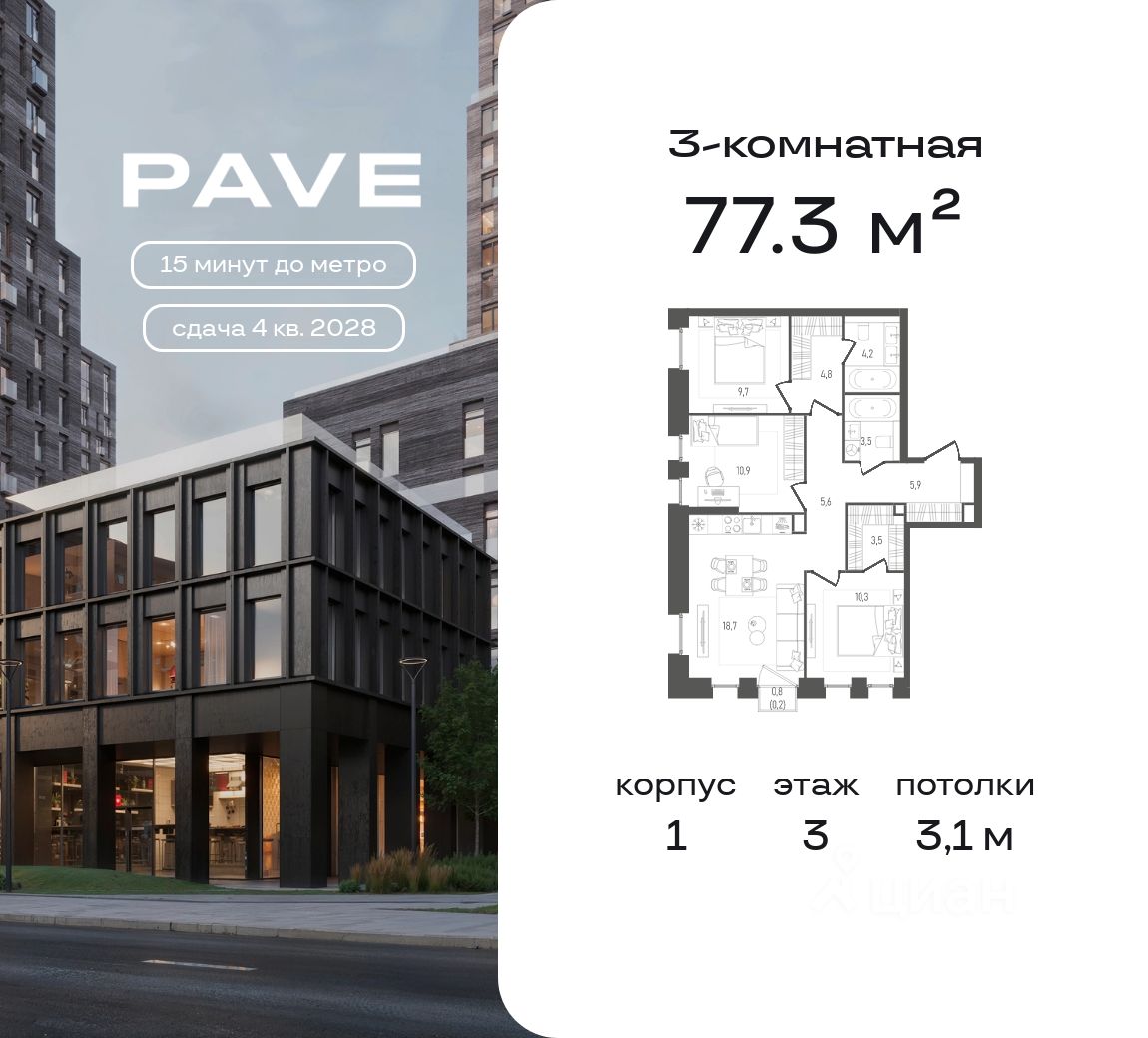 Проект бизнес-класса Pave от девелопера FORMA. Метро Павелецкая в пешей доступности, удобные выезды на ТТК и Садовое кольцо. Архитектура от бюро MAYAK. Благоустройство дворов — Magly. Приватный внутренний двор с водной гладью и местами для отдыха, коворкинг под открытым небом. Детские площадки с уникальным игровым оборудованием, спортивные площадки с зоной воркаут. Квартиры с панорамным джамбо остеклением, французскими балконами, террасами, мастер-спальнями и гардеробными. Высота потолков от 3,1 м. На последнем этаже пентхаусы с каминами и высотой потолков 3,6 м. Дизайнерское гранд-лобби для резидентов с фит-рум, коворкингом и общественной гостиной. Двухуровневый подземный паркинг и келлеры.