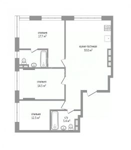 Квартира без чистовой отделки. В квартире выделены мокрые зоны, установлены двойные стеклопакеты, заведены инженерные коммуникации, есть счетчики.