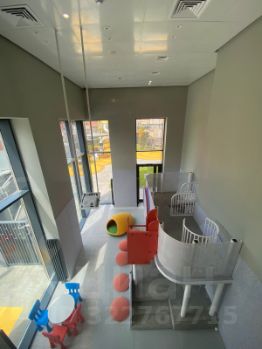 Красивый холл с дизайнерской отделкой, в котором оборудована стойка ресепшен и мини-гостиная для отдыха и переговоров (лобби) детская игровая комната.