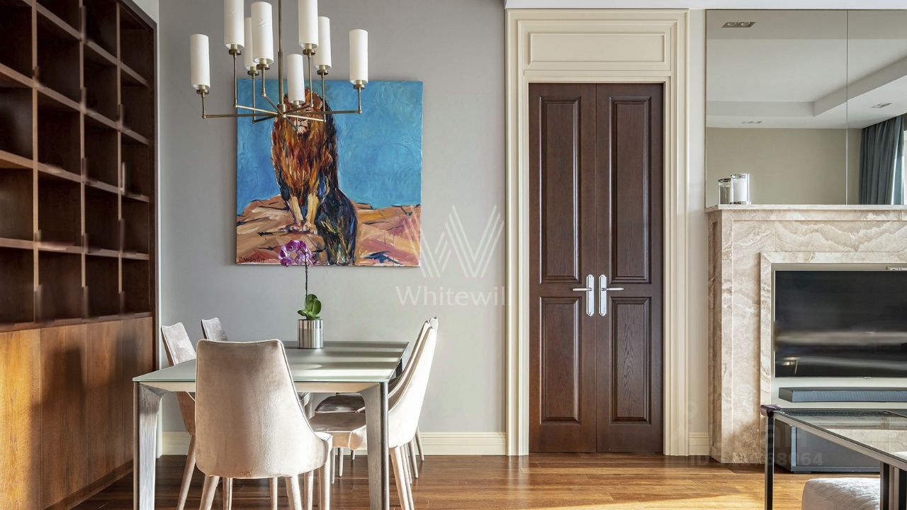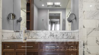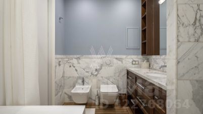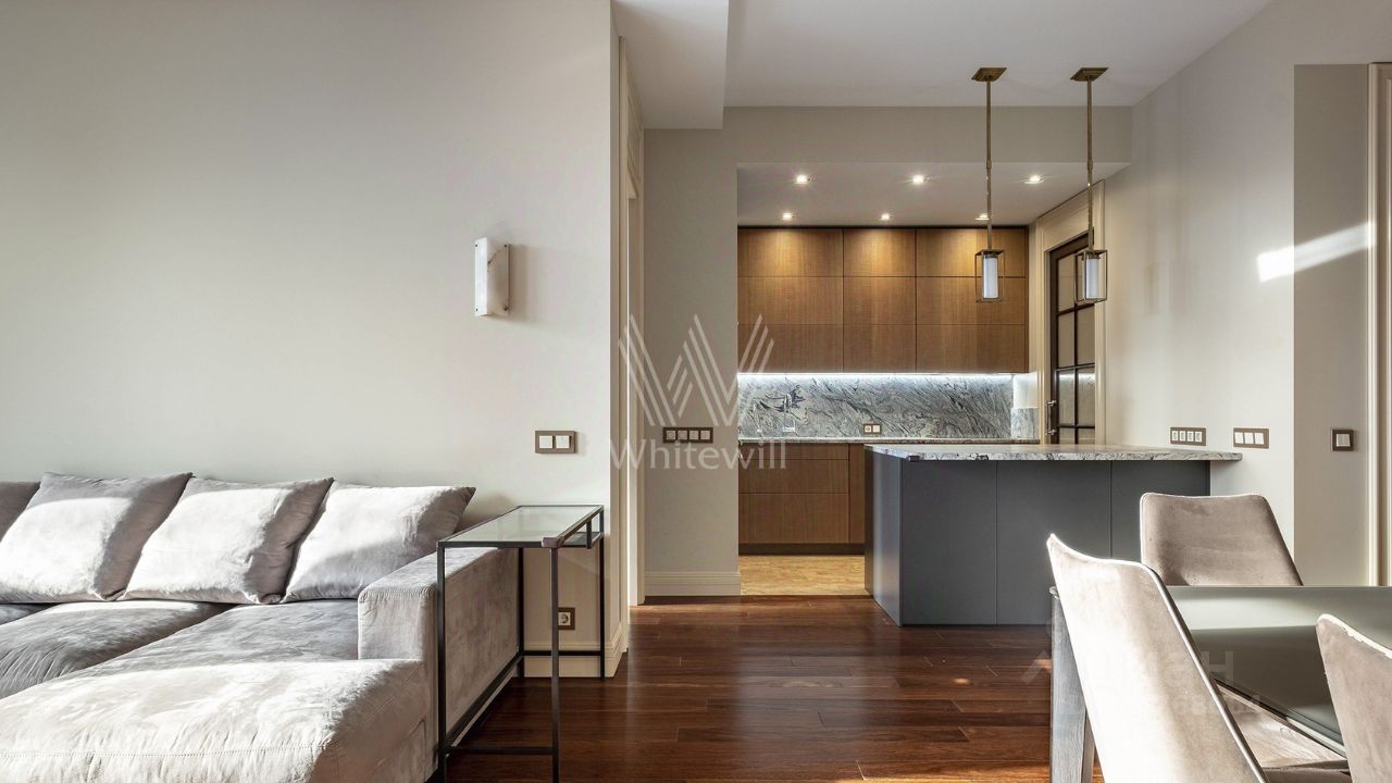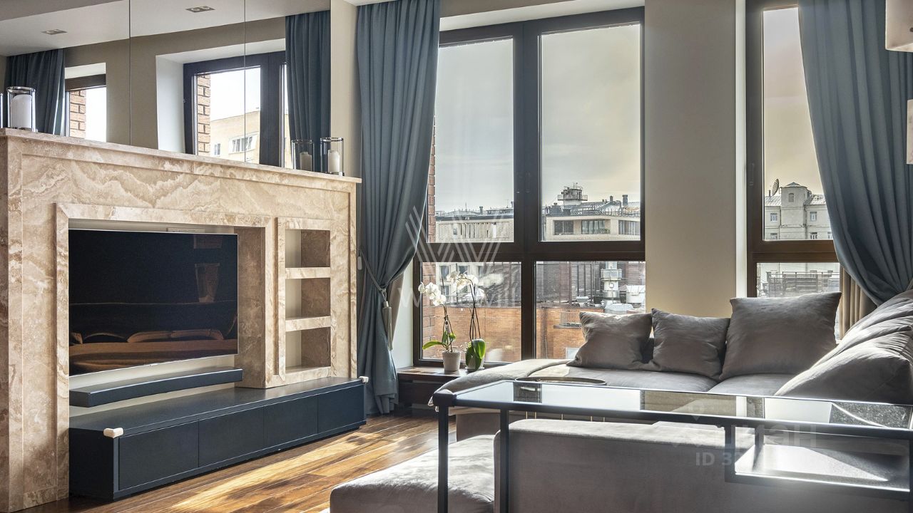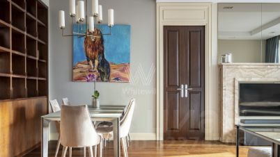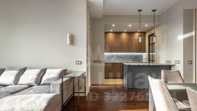 Квартира с двумя спальнями общей площадью 100 м² в комплексе премиум-класса Barrin House на восьмом этаже. Выполнена отделка с использованием натуральных материалов — мрамора и дерева. На полу выложен паркет из массива сукупира. Установлены кондиционеры Daikin. Квартира укомплектована бытовой техникой Miele. Сантехника представлена брендом Villeroy&Boch.