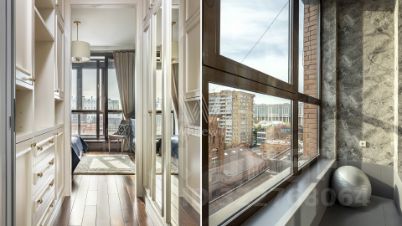 Освещение от Visual Comfort. Планировка включает кухню, спальню со своей гардеробной, санузлом и выходом на лоджию, кабинет, который можно оборудовать как вторую спальню, гостевой санузел, постирочную, гардеробную и холл. Благодаря панорамному остеклению пространство наполнено естественным светом и теплом.