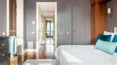 Квартира с двумя спальнями общей площадью 100 м² в комплексе премиум-класса Barrin House на восьмом этаже. Выполнена отделка с использованием натуральных материалов — мрамора и дерева. На полу выложен паркет из массива сукупира. Установлены кондиционеры Daikin. Квартира укомплектована бытовой техникой Miele. Сантехника представлена брендом Villeroy&Boch. Эксклюзив.
