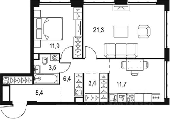В 2ух словах расскажу про саму квартиру, она имеет 63.6 квадратных метра. Срок