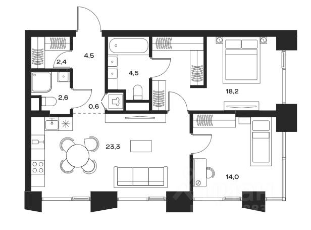 столицы, площадь квартиры составляет 70.1 квадратных метров.