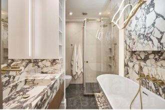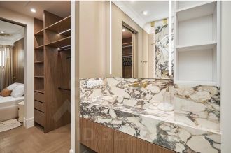 Итальянская керамика, шпон и дерево делают интерьер роскошным и изысканным.