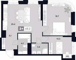 • 60 неповторяющихся планировок: квартиры с угловым "плавным" панорамным остеклением, мастер-спальнями и гостиными до 39м² и просто очень большие квартиры площадью до 128,6 м²