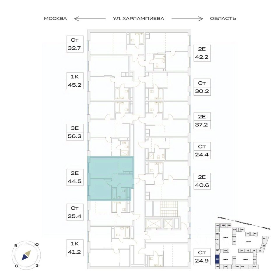 ЖК "Детали" | 2-комнатная квартира, 44.50 м², 16-й этаж.