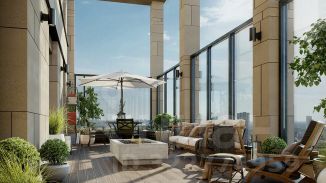 Территория комплекса благоустроена и озеленена: имеется система контроля доступа, открытые террасы на крышах, для автовладельцев предусмотрен подземный паркинг.