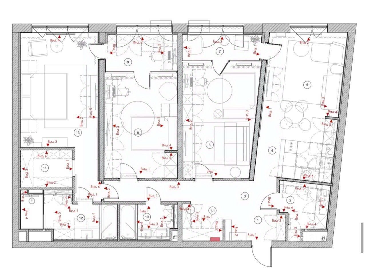 Есть готовый дизайн-проект: объединенная кухня-гостиная, 1 мастер-спальня, 2 детских, 2 лоджии, 2 санузла, гардеробная и постирочная комнаты.