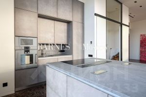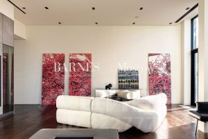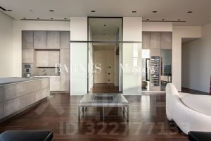 В апартаменте выполнена дизайнерская отделка. Планировочным решением предусмотрены: просторная гостиная с зоной кухни-столовой, 4 спальни с собственными санузлами, гардеробные комнаты, постирочная.