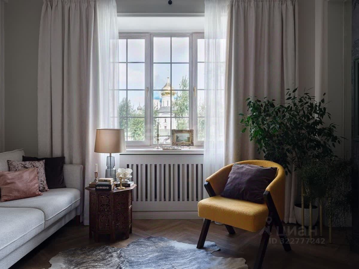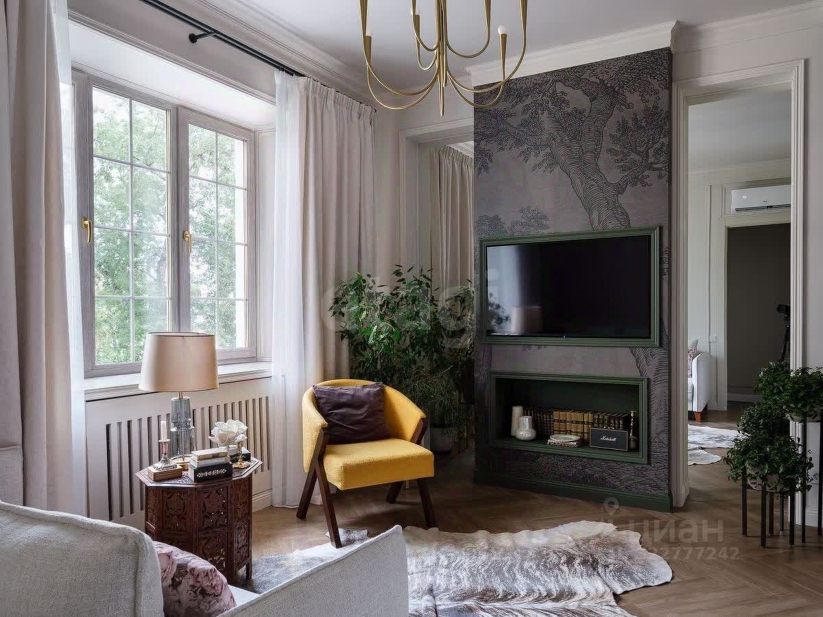 Интерьер квартиры сочетает элементы старой Москвы и современный комфорт. Недавно выполнен ремонт, квартира продаётся с мебелью, техникой и декором. В гостиной есть зона отдыха и зона для сна. Два шкафа заменяют гардеробную. Ванная просторная, с встроенной стиральной машиной и множеством мест для хранения. Кухня оборудована холодильником, посудомоечной машиной, варочной поверхностью, духовкой, СВЧ и вытяжкой. В прихожей удобная зона с пуфиком, комодом и шкафом для одежды. Подъезд чистый, во дворе всегда есть парковка.