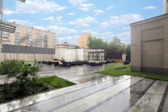 Благоустроенный закрытый двор с ландшафтным дизайном, детской площадкой, коворкинг-зоной с Wi-Fi