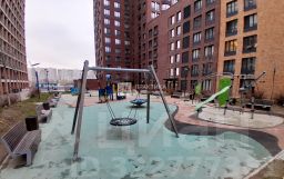 Во дворе детские площадки, ландшафтный дизайн и зоны отдыха.