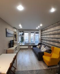 Отличное состояние и удобная планировка: кухня-гостиная, отдельная комната с диваном и рабочим местом, совмещенный санузел с ванной, высокие потолки.