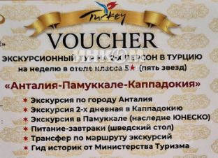 Бонус: При покупке в подарок ваучеры на экскурсионный тур в Турцию на неделю в отеле 5* на 2-х!
