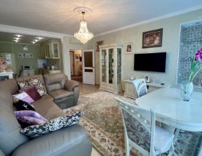 Продается просторная в одном из самых комфортных районов Москвы доме Бизнес-класса евро 2 квартира в современном доме на Новоясеневском проспекте. Общая площадь — 68,60. Расположена на 9 этаже 23-этажного монолитного дома, построенного в 2014 году. Высота потолков — 2.9 метра. В квартире выполнен ремонт с использованием качественных материалов, установлена современная бытовая техника и мебель. Ремонт производился компанией ФЛЭТ. Окна квартиры выходят на Северо Запад. Функциональная планировка: - светлая и уютная кухня оборудована всей необходимой немецкой техникой Kaizer и просторной обеденной зоной; - просторная гостиная с удобным кожаным диваном с одним большим окном выходящим на Запад; - теплый электрический пол в ванной комнате и кухне; - вся мебель в квартире из дерева производства Белоруссия; - межкомнатные двери из натурального дерева; - плитка в ванной комнате и кухне Италия; - обои в кухне-гостиной и спальне Италия; - ковры производства Бельгия шелк; - люстра в гостинной Испания хрусталь; - люстры в спальне и прихожей Богемия Чехия хрусталь; - входная дверь производства Гардиан с шумоизоляцией и Итальянскими замками. Мебель, техника и предметы интерьера остаются новым хозяевам. Прекрасно развита инфраструктура. В шаговой доступности находятся детские сады, школы, гимназия, лицей Воробьевы горы, международная школа, поликлиники, МФЦ. Помимо социальной инфраструктуры рядом расположены магазины и ТЦ Ясенево, салон красоты, рестораны, банки. Фитнес-клуб с бассейном. Современное лобби с консьерж-службой. В подъезде 5 премиальных высокоскоростных лифта популярной марки Kone. Двор без машин, въезд только по пропуску на короткое время. Территория комплекса благоустроенная, детской и спортивной площадками, зоной отдыха для взрослых, с круглосуточной 24/7 охраной и видеонаблюдением по всему периметру, в том числе и в подъездах. Место расположение очень удачное для жилого дома, вблизи Битцевского и Голубинского лесопарков, в одном из самых экологически чистых районов Москвы. Поблизости нет промышленных предприятий, кварталы ухожены и благоустроены. Для прогулок и отдыха прекрасно подойдёт благоустроенный Битцевский парк с зонами отдыха, спортивными площадками, аллеями для прогулок и пробежек на свежем воздухе. Удобная транспортная доступность, станция метро Ясенево всего в 3-х минутах ходьбы. Комфортный и быстрый выезд на МКАД. Так же есть удобное по расположению машино-место, стоимость обговаривается отдельно. Один взрослый собственник, в квартире ни кто не зарегистрирован, быстрый выход на сделку. Уважаемые коллеги агенты, риэлторы и агенства недвижимости просьба не тратьте свое и мое время!!!