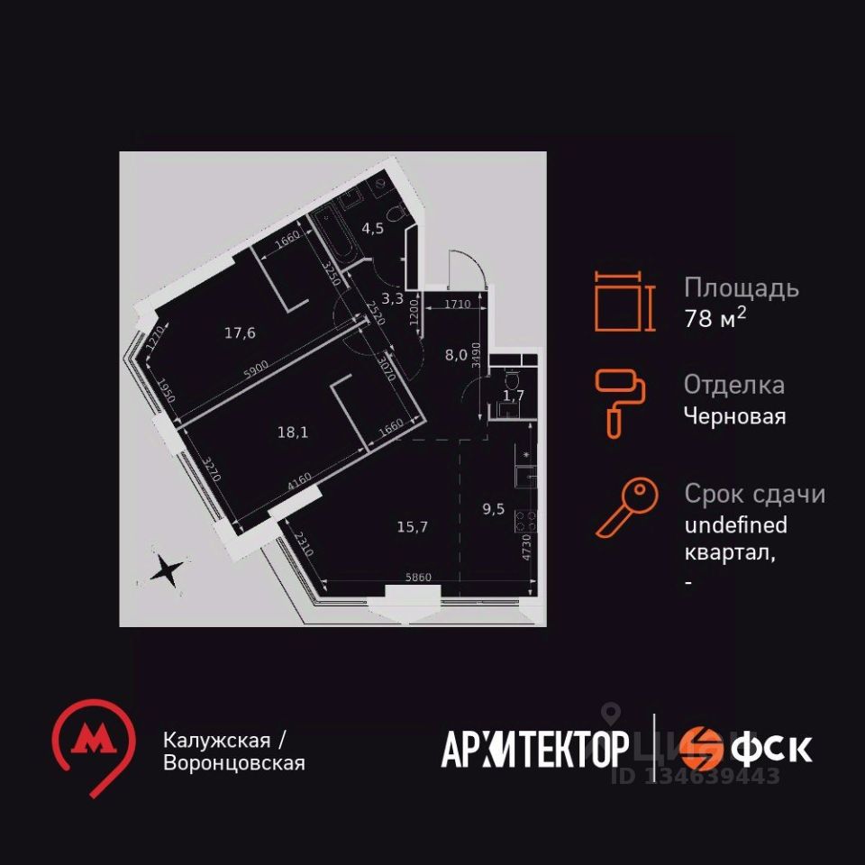 Продаётся 3-к квартира номер 1426 общей площадью 78.4 кв.м. на 34-м этаже 47 этажного дома. Отделка Whitebox. Цена с учётом скидки!