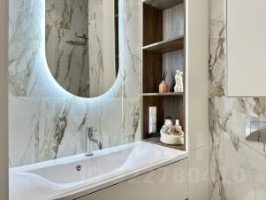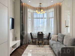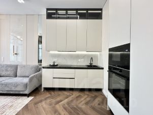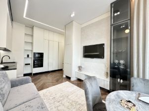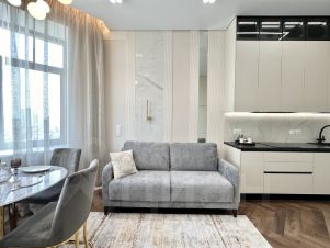 Технологичный комфорт: Вся встроенная техника (холодильник, духовка, СВЧ, стиральная и сушильная машины), умные системы, автоматические гардины.