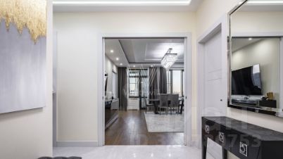 Просторная квартира с тремя спальнями в комплексе бизнес-класса "Достояние". Квартира площадью 170 м² расположена на семнадцатом этаже в корпусе два. Выполнена авторская отделка в стиле современной классики. В оформлении использованы фактуры мрамора, гранита и дерева. Интерьеры украшают многоуровневые потолки с подсветкой и дизайнерскими люстрами.
