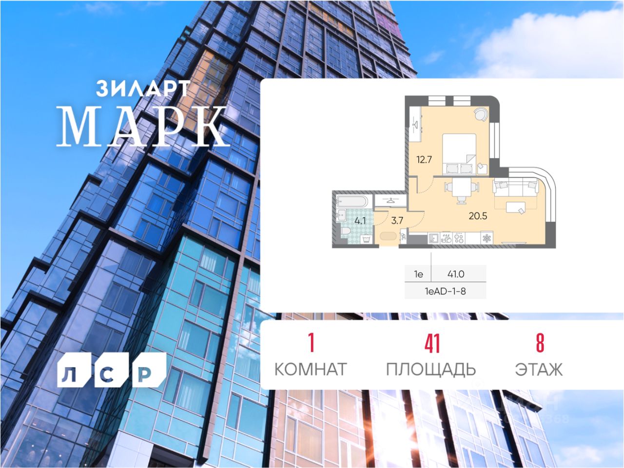 В доме премиум-класса ЗИЛАРТ МАРК продаётся 1-комнатная квартира общей площадью 41 кв. метров на 8 этаже. Дом располагается в престижном Даниловском районе Москвы в жилом комплексе "ЗИЛАРТ".