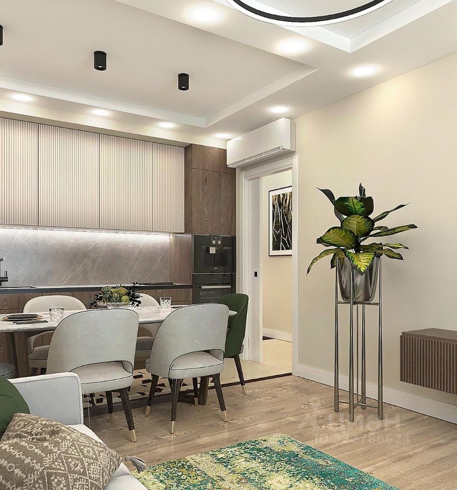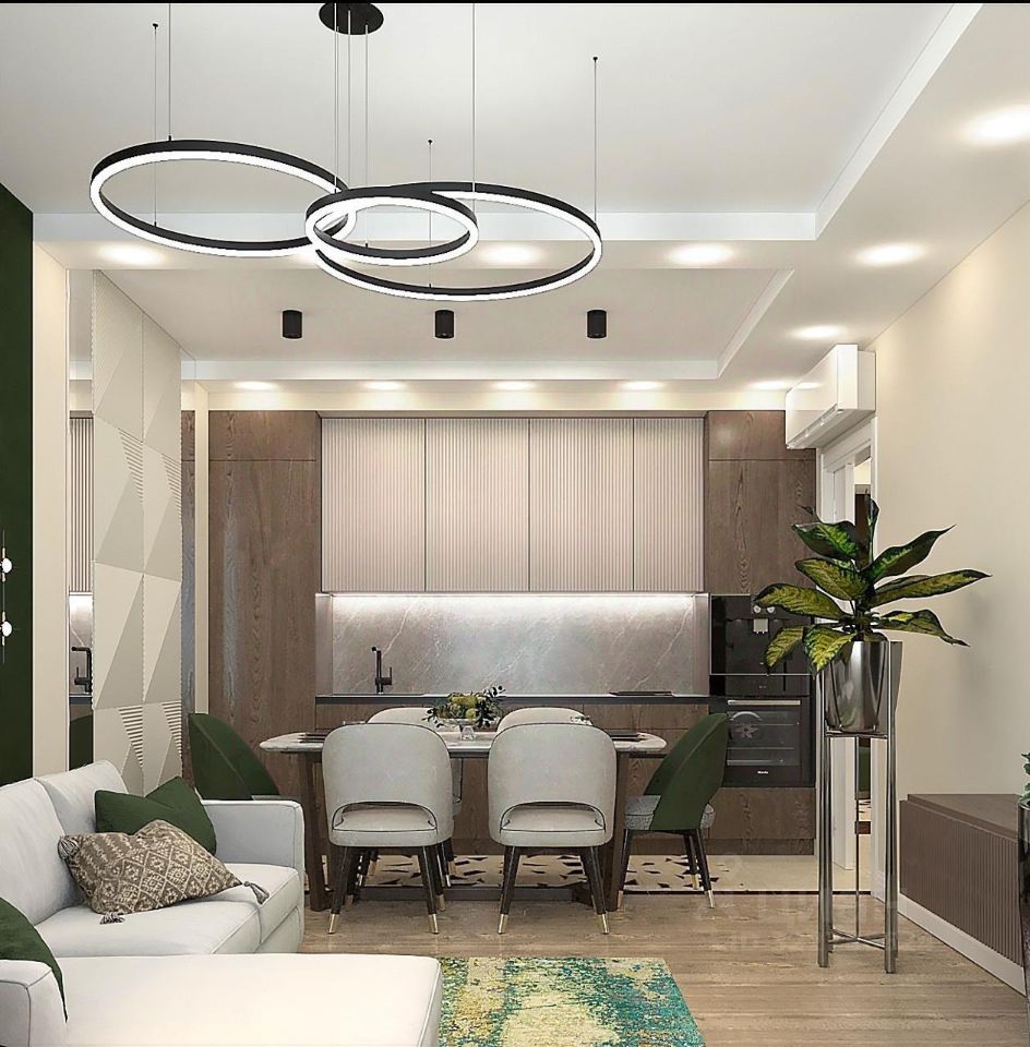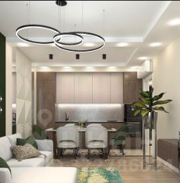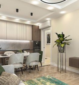 - Просторная гостиная, объединенная с кухней, станет идеальным местом для семейных обедов и дружеских встреч.
