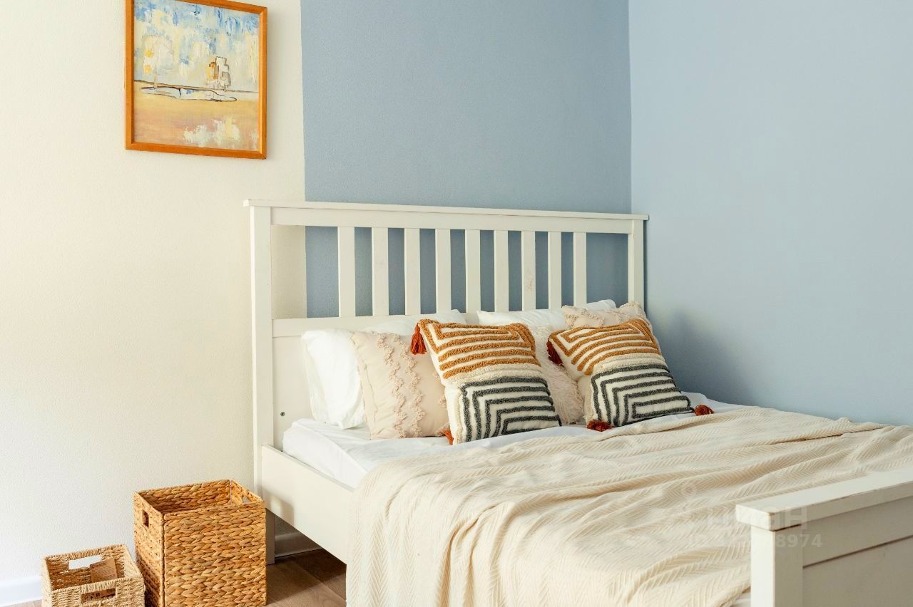 В большой комнате можно сделать зонирование на гостиную и спальню — например, прикрыть кровать стеллажом или шторой (хотя мне нравится и так, как есть на фото). В маленькой комнате можно также сделать спальню или кабинет. Квартира идеальна для пары или семьи с ребёнком. В кладовой в маленькой комнате можно сделать гардеробную и не тратить место и деньги на шкафы