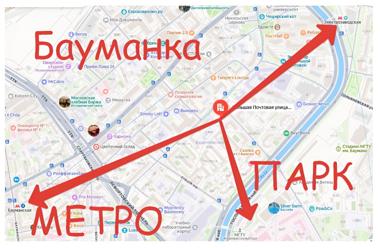 Про ЛОКАЦИЮ: до метро Бауманская, Электрозаводская - 8 мин пешком, в пешей доступности станция Д4 , ЖД , Парк. До МГТУ имени Н.Э. Баумана 14 минут пешком.