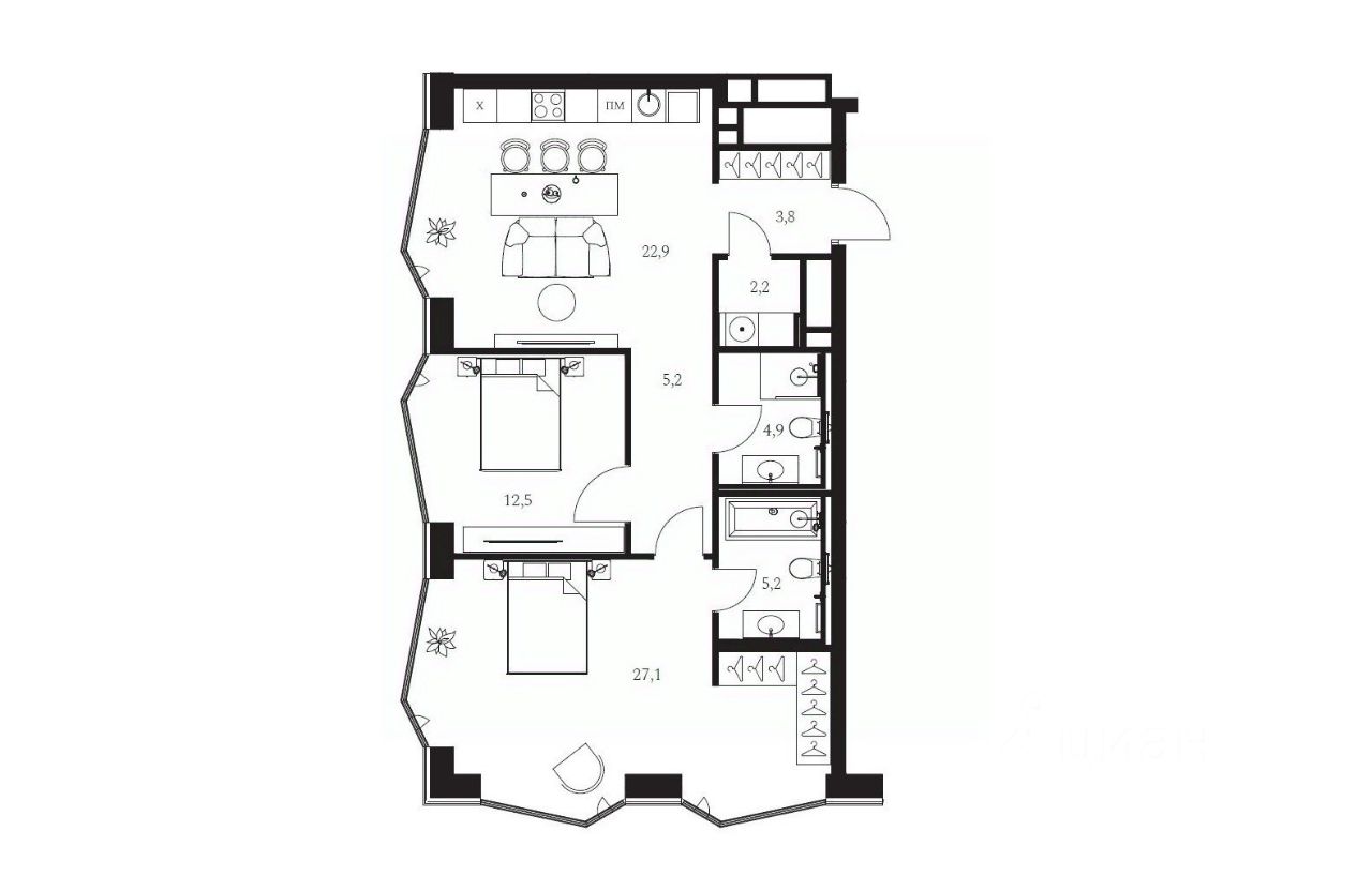 Предлагаем чудесную двухкомнатную функциональную квартиру в комплексе премиальных апартаментов A-Residence - пространстве, где каждая деталь - от уровня сервиса до пейзажа за окном - говорит о вкусе, опыте и свободе выбора. Преимущества: - Возможность организовать просторную кухню с зоной столовой, мастер-спальню, вторую спальню или спланировать пространство по своему вкусу; - Высокие потолки; - Отсутствие отделки позволит претворить в жизнь любые дизайнерские решения и самые смелые идеи. Планировкой можно предусмотреть большую (22,9 метра) кухню со столовой зоной или зоной гостиной, мастер-спальню (27,1 метра) с санузлом и гардеробной/кабинетом, вторую спальню/детскую/кабинет, совмещенный санузел, прихожую и зону постирочной. О комплексе: Пять особняков разной этажности составляют пространство комплекса. Фасады домов выполнены из натурального камня, а металлическая отделка окон создает контраст и ритм экстерьера. Современная архитектура элегантно вписана в дизайн-код окружающего района. Скрытый от посторонних, изолированный от шума внутренний двор-сад создан немецким архитектурным бюро Udo Dagenbach для идеального отдыха. Даже в холодное время года двор будет зеленым благодаря хвойным деревьям и кустарникам, а с приходом весны сад наполнится палитрой ярких красок и ароматов многолетних цветов. Приточно-вытяжная система вентиляции, центральное кондиционирование с учетом индивидуального потребления и терморегуляторами в каждом помещении. Бесконтактная система контроля доступа, охрана и видеонаблюдение, а также усилители сигнала для высокоскоростного интернета и бесперебойной связи для всей территории ЖК. Подземный одноуровневый паркинг вмещает в себя 230 машиномест, включая увеличенные парковочные места для автомобилей представительского класса. Инфраструктура: На первых этажах A-Residence находятся кафе и рестораны "Кофемания", Correas, Paul, "Бутчер", фитнес-центр, салон красоты, химчистка. Кроме того, управляющая компания комплекса возьмет на себя заботу о Вашем доме и выполнение хозяйственных поручений. ЖК располагается рядом с Международным Домом музыки. В ближайшем окружении: новая сцена Малого театра, Театр Луны, Русский духовный театр Глас. Поблизости открыты десятки кафе, баров и ресторанов, магазины премиум-сегмента (Вкус Вилл, Азбука Вкуса, Al Daily). Рядом несколько танцевальных школ и балетных студий, общеобразовательные школы 1259, 659, 518. Частные клиники, стоматологии, медицинские центры. Транспортная доступность: В 9 минутах ходьбы - станция метро "Павелецкая", в 16 минутах - "Таганская", в 18 - "Новокузнецкая" и в 20 минутах пешком - станции метро "Третьяковская" и "Добрынинская". Удобные выезды на Садовое кольцо и Садовническую набережную. Сотрудничаем с коллегами 50/50. Компания "Винидиктов и Партнеры" - участник Ассоциации Агентств Элитной Недвижимости AREA! Арт. 119943648