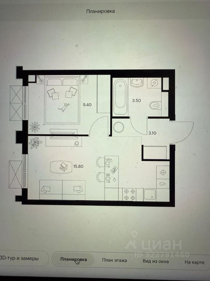 Площадью квартиры 32.4 кв.м , расположена на 20 этаже 22-этажного дома.