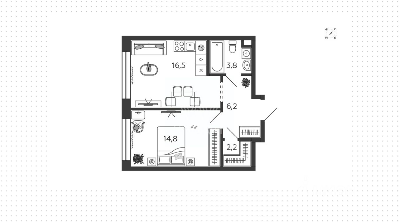 Квартира с одной спальней общей площадью 44 м² в комплексе Shagal. Квартира без отделки расположена на третьем этаже в корпусе 3, секция 3.1. Возможно спланировать кухню-гостиную, спальню, ванную комнату, гардеробную и прихожую. Благодаря панорамному остеклению пространство наполнено естественным светом и теплом, открываются виды на территорию комплекса.