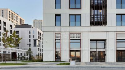 Главное о доме. Shagal — новый квартал на набережной Марка Шагала с длинной линией воды и собственными пешеходными маршрутами у берега. Архитектура складывается в ансамбль башен и камерных урбан-вилл: крупное остекление, светлые фасады, разная этажность и квартальные улицы. Во входных группах — натуральный камень, мягкий свет, стойки ресепшн и зоны для коротких встреч. На стилобате устроили дворы без машин: бульвары, детские и спортивные площадки, тихие лаунж-углы. В составе проекта запланировали школу и несколько детских садов, на первых этажах открываются кафе и повседневные сервисы. Для автомобилей работает многоуровневый паркинг со спуском на лифте к лобби.