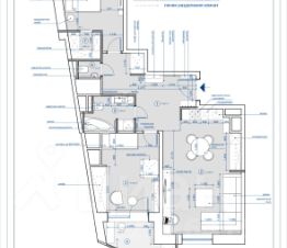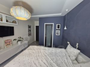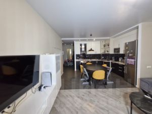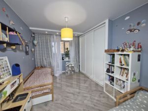 Встроенная мебель, выполненная по индивидуальному заказу по эскизам дизайнера во всей квартире - в комнатах, кухне. Два санузла, один с ванной, другой просто туалет.
